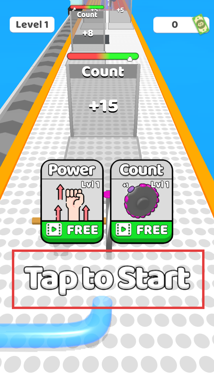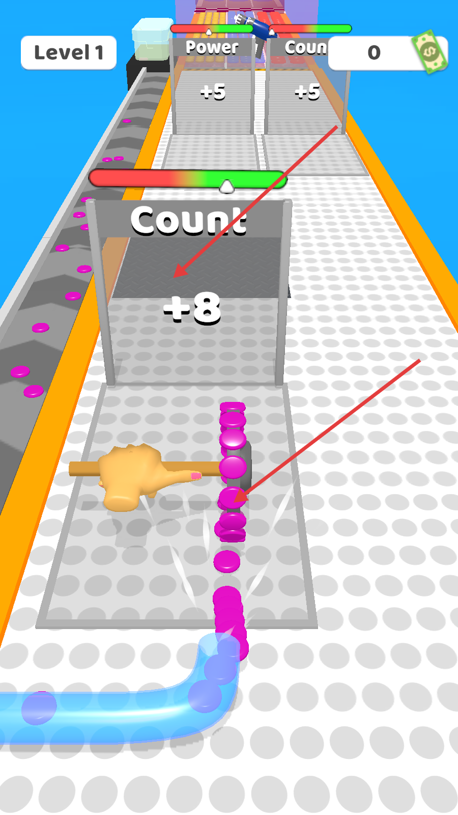 2、操控道具收集粉色物品,通过标有【Count+8】的区域。