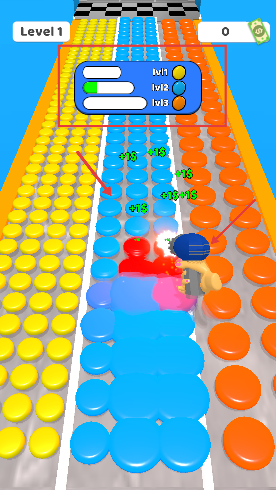 1、创新染色机制:将传统跑酷与染色玩法相结合,玩家需要通过奔跑染色来扩大领地面积,创造独特的竞技体验。