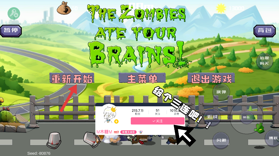 4、游戏失败后点击【重新开始】,再次挑战,积累经验提升游戏表现。