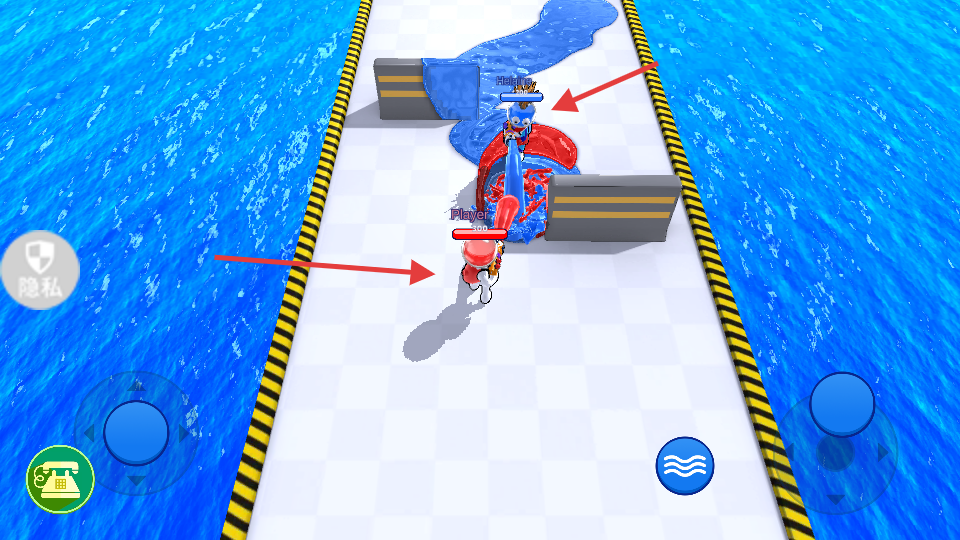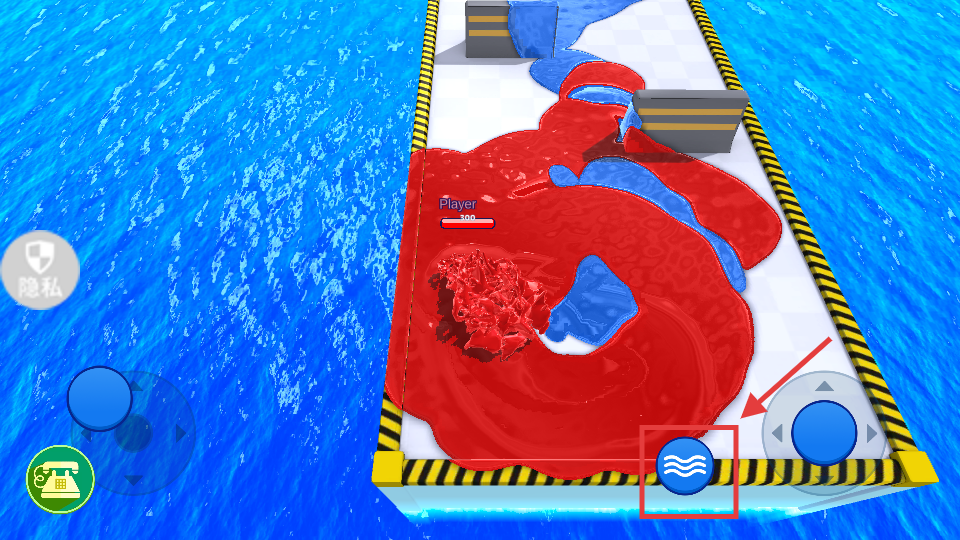 2、点击波浪按钮喷射颜料,大量覆盖空白及敌方区域,扩大己方涂色领地,增强控制。