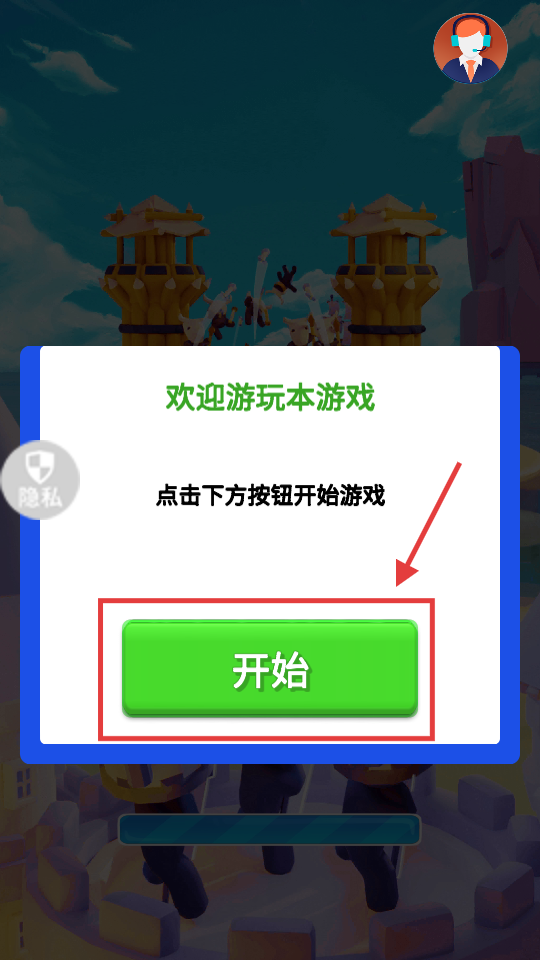 1、点击“开始”按钮进入游戏,开启弓箭射击闯关,准备守护与攻占城堡。