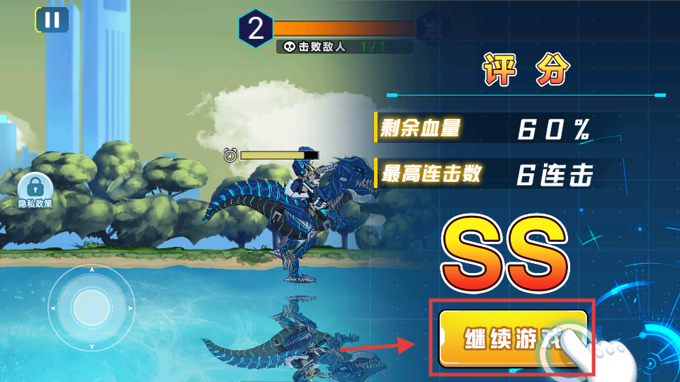 4、关卡结束点击“继续游戏”,进入下一关,积累评分提升机甲实力,解锁更多挑战。