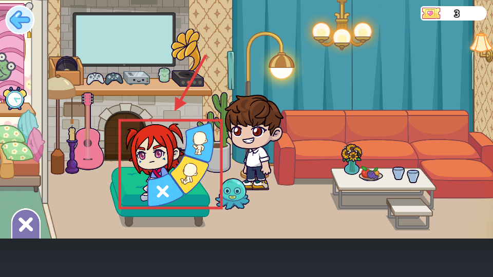 2、互动红头发女孩旁边的卡片区域,选择对应的选项推进当前的剧情发展。