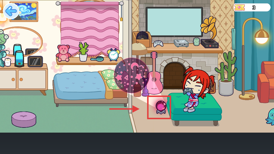 3、点击粉色水晶球道具,触发奇幻效果解锁新的游戏内容或剧情节点。