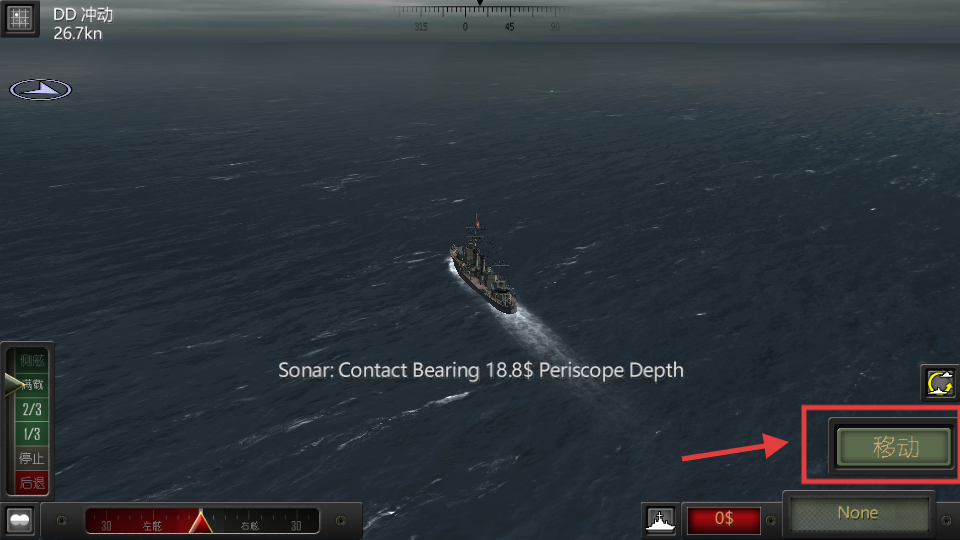 3、战斗中利用移动按钮调整舰船位置,结合声呐信息规划路线,抢占射击或规避优势。