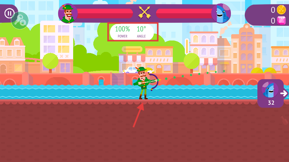 2、依据上方力量(100%)和角度(10°)参数,瞄准敌方调整射击,提升命中效率。