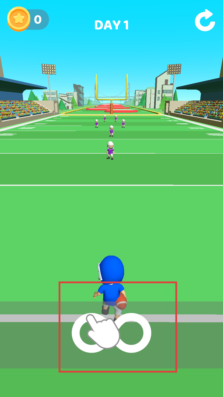 1、游戏开始,在【DAY1】场景中,按提示滑动操作,控制角色持球前进。