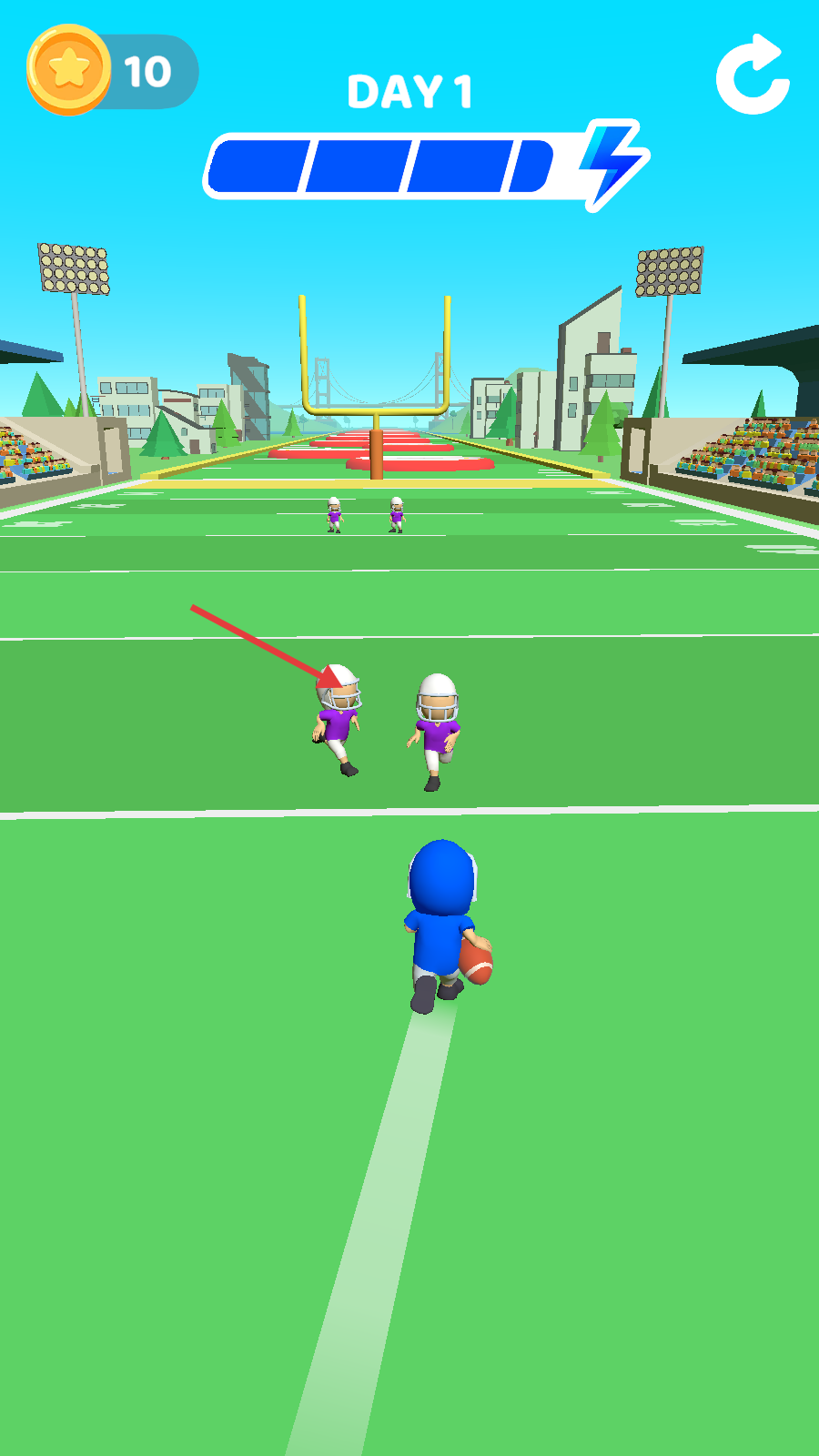 四分卫冲刺是一款以美式橄榄球比赛为核心的休闲竞技类手机游戏,采用简约明快的风格呈现激烈的球场对抗场景。玩家需要通过灵活操控四分卫角色进行移动和传球,然后注意突破对手防守并完成达阵得分,体验紧张刺激的橄榄球比赛乐趣。游戏提供多种球员角色和战术选择,配合简单直观的操作方式和真实的比赛规则,带来充满竞技性的体育游戏体验。