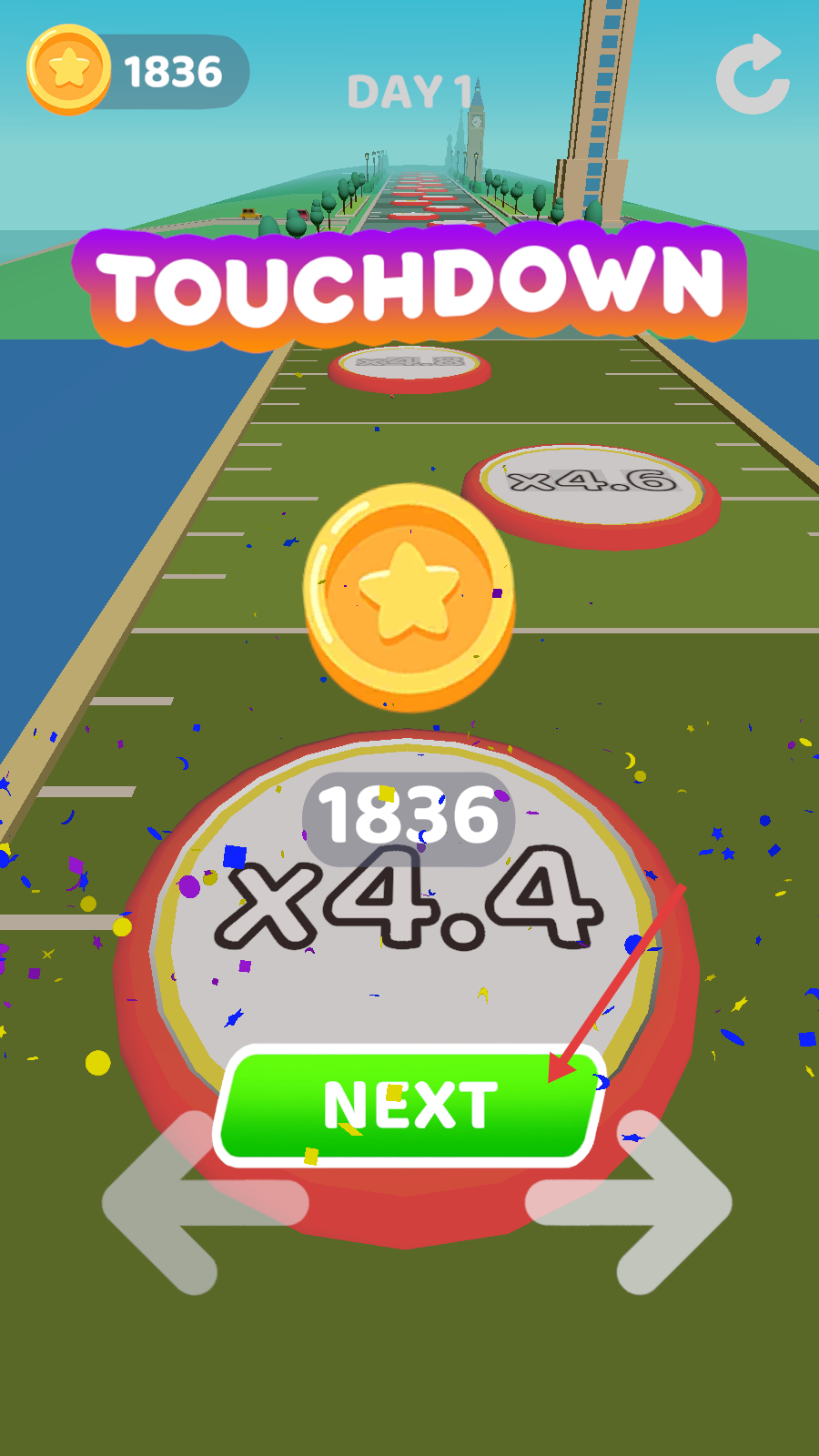 4、成功达阵后,出现【TOUCHDOWN】提示,点击【NEXT】进入下一关。