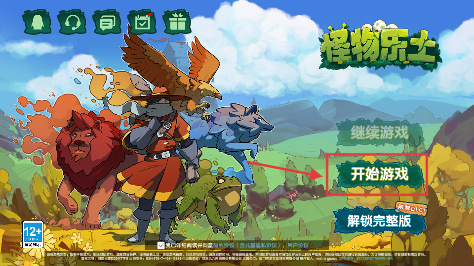 1、勾选【我已详细阅读并同意隐私协议】后,点击【开始游戏】,开启魔物养成冒险之旅。