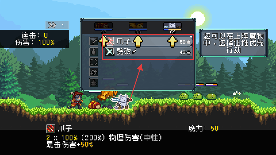 4、战斗时选择【爪子】(【2】×【100%】物理伤害,暴击伤害加【50%】)或【劈砍】,结合连击提升输出。