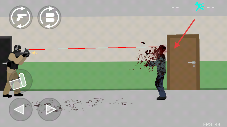 3、要时刻注意僵尸的动向,一旦有僵尸靠近或要扑倒,就得快速瞄准射击,避免被碰到导致游戏结束。
