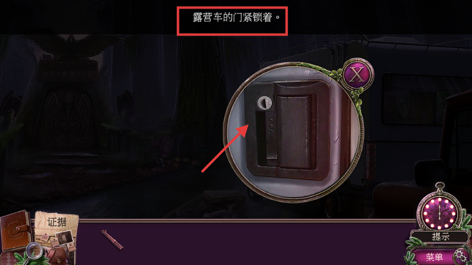 2、发现露营车门紧锁,需在场景中寻找开锁工具或钥匙,以进入车内获取线索。