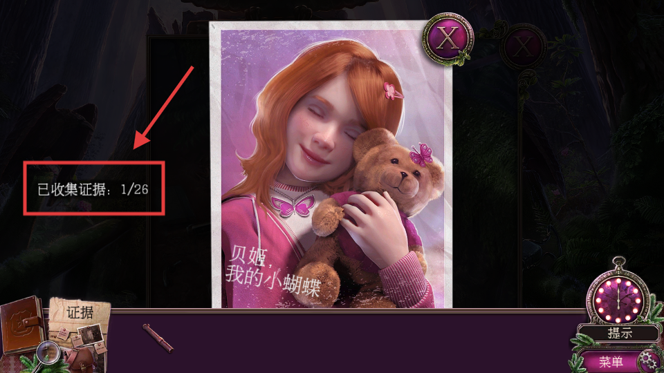 4、收集照片后,关注左侧证据收集进度,继续探索场景,寻找剩余线索推进解谜。
