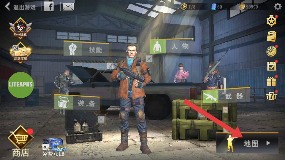1、在主界面点击【地图】按钮,进入关卡选择界面。