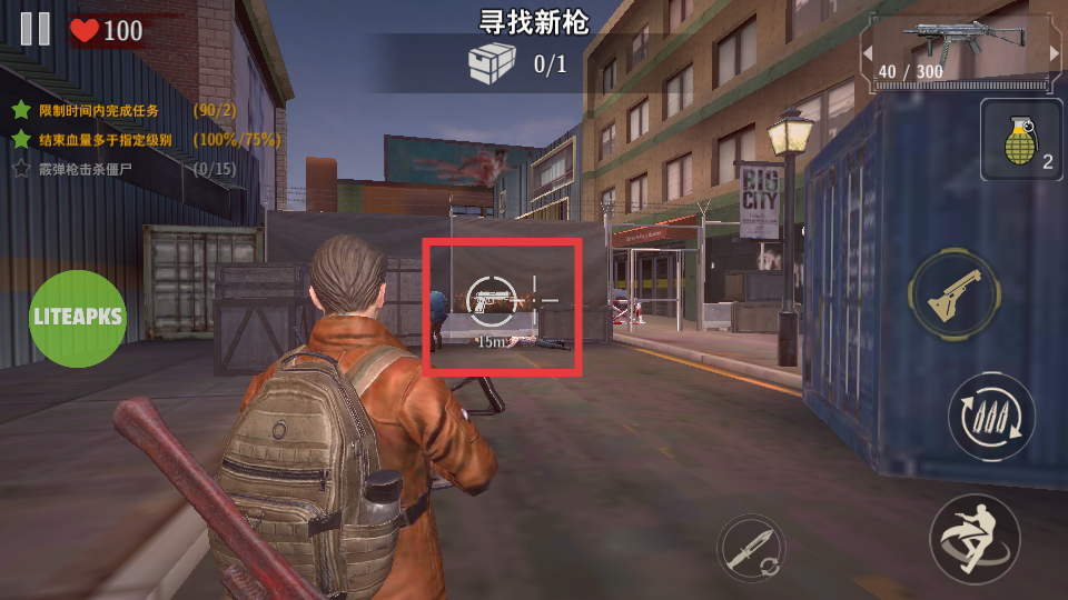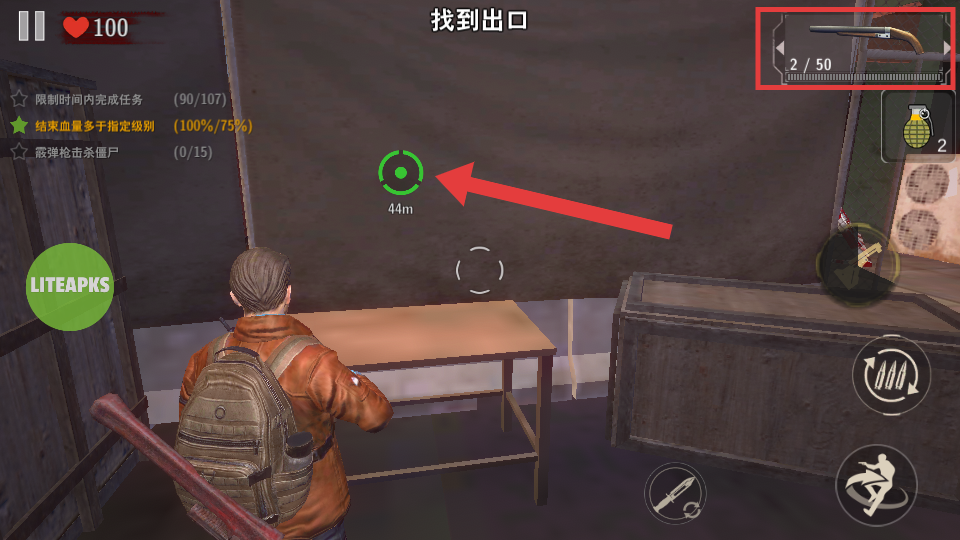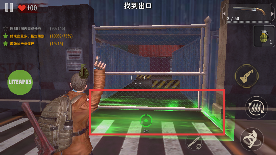 2、接取“寻找新枪”任务,前往标记地点获取新武器,过程中消灭阻碍的僵尸。