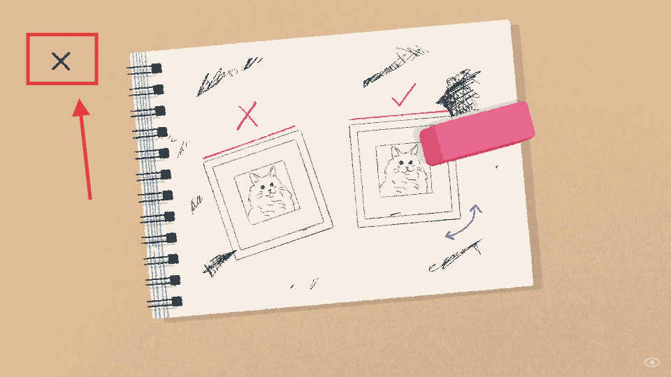 3、当看到笔记本教程示意图时,点击左上角叉号,关闭教程界面,回到收纳操作场景。