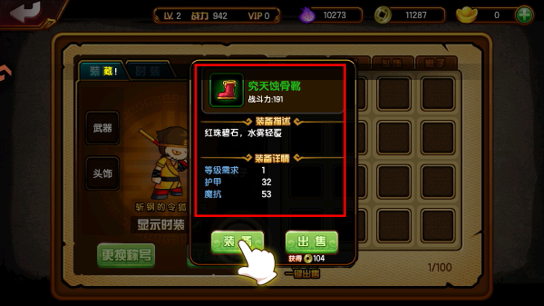 4、点击装备对应的穿戴按钮给角色穿新装备,提升战力与各项基础属性,有效增强战斗能力。