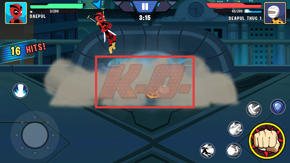 3、战斗中,持续攻击敌人,当敌人血量耗尽时,会出现【K.O.】提示,代表敌人被击败。