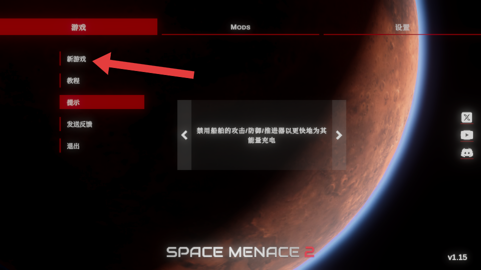 1、在游戏主界面点击【新游戏】按钮,开启太空冒险之旅。