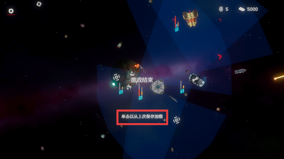 4、若游戏失败,出现【游戏结束】界面,点击【单击以从上次保存加载】按钮,读取存档重新挑战。