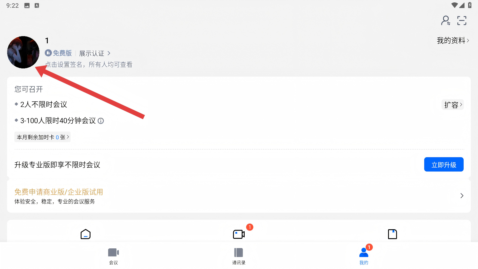 进入个人中心,点击【个人会议号】。