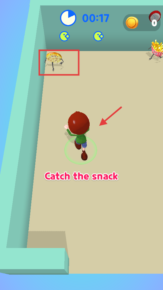 2、游戏开始后,操控角色追逐移动的食物,按提示抓住并吃掉它们。
