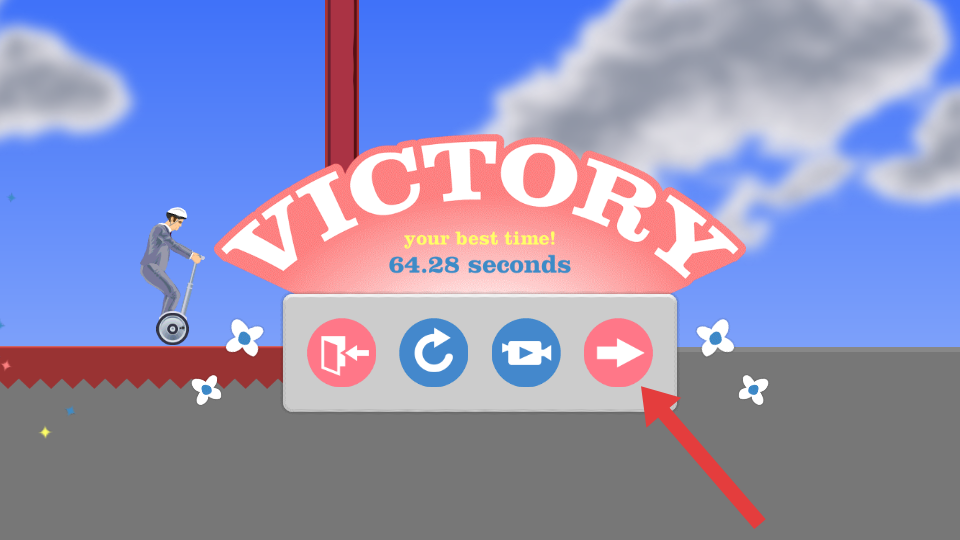 4、成功抵达终点,看到【VICTORY】提示后,点击箭头所指按钮,可选择进入下一关继续挑战。