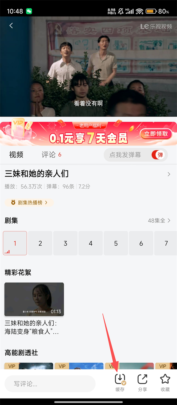 4、进入剧集详情页后,找到下方的【缓存】按钮并点击,就能下载电视剧,实现离线观看啦。