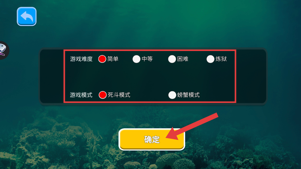 1、在游戏设置界面选择【简单】难度和【死斗模式】,点击【确定】按钮开始游戏,新手可从简单难度入手熟悉玩法。