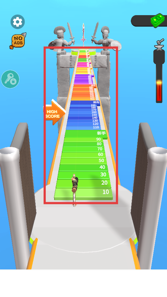 4、冲刺到分数赛道区域,无限金币助力武器突破极限,获取更高分数和奖励,不断刷新游戏记录。