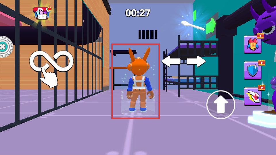 1、进入游戏后,操控橙色兔耳角色,可通过滑动等操作移动。