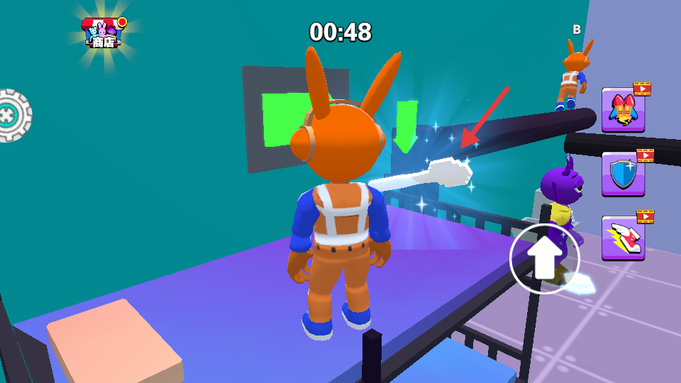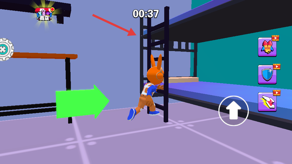 2、跟随场景中的绿色箭头指引,操控角色移动、攀爬双层床。