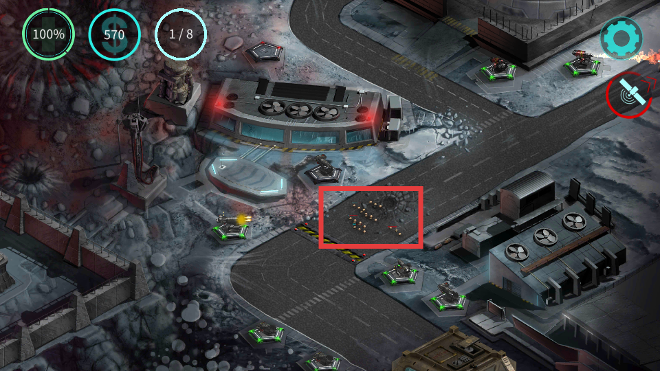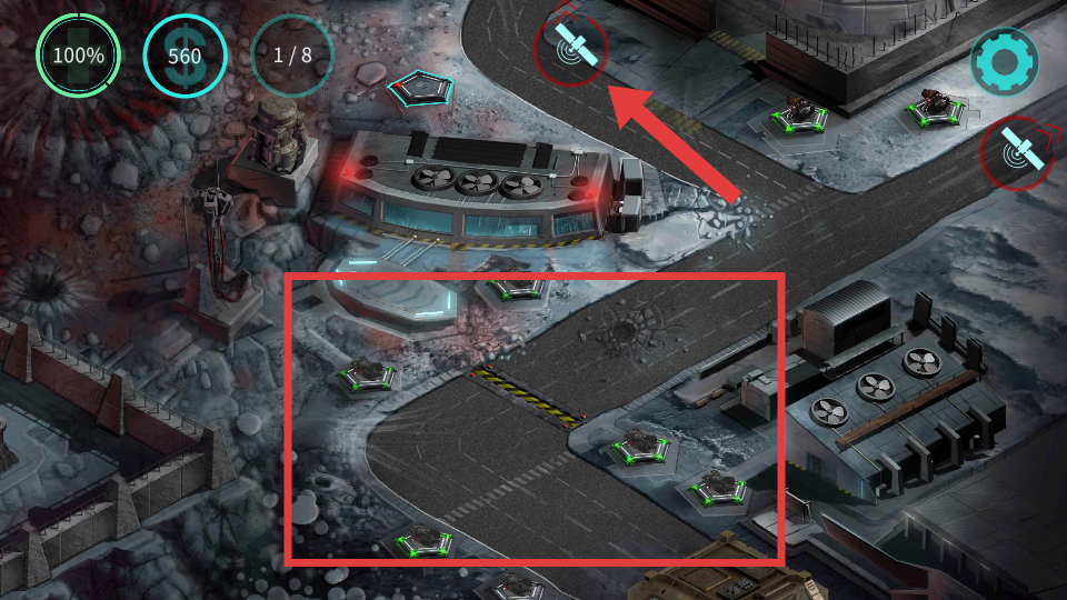 2、战斗中利用内置功能,在关键位置布置防御塔,同时使用卫星等道具辅助防御,阻挡敌人进攻。