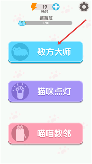 1、在【苗苗班-1/10】界面,点击【数方大师】按钮进入关卡,开始对应的数方解谜挑战。