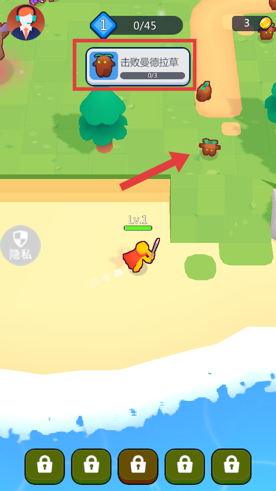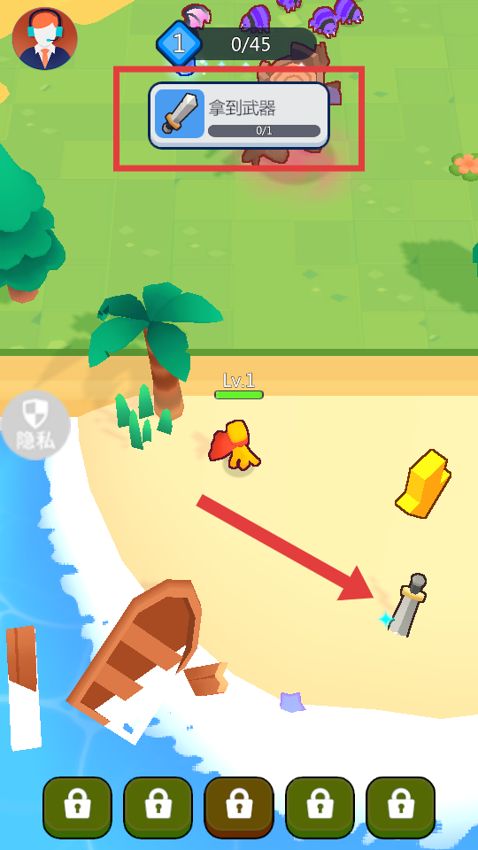 1、优先前往沙滩上的剑处,完成【拿到武器-0/1】任务,获取武器后才能开展后续战斗。