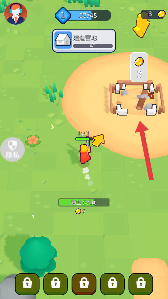 3、完成战斗后,前往指定区域建造营地,完成【建造营地-0/1】任务,建立据点以稳固发展。