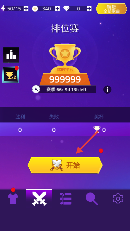 1、点击【开始】按钮,进入排位赛,参与赛季66的排名竞争。