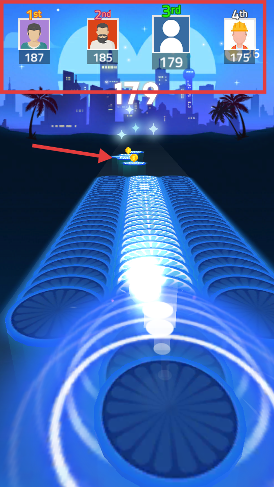 3、沿蓝色踏板路径前进,收集金币,维持或提升当前排名。