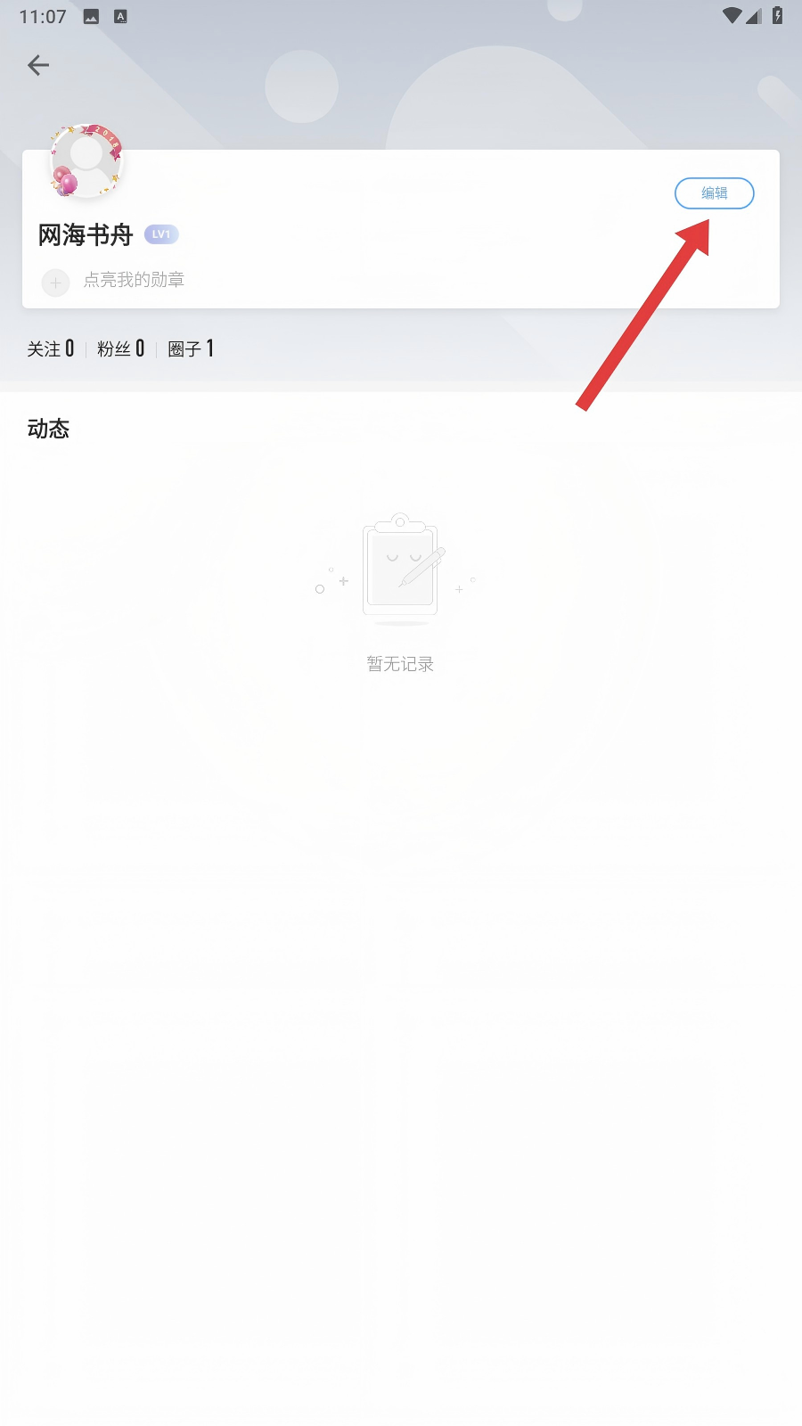 2、在个人主页,点击右上角【编辑】按钮,进入个人资料编辑界面啦。