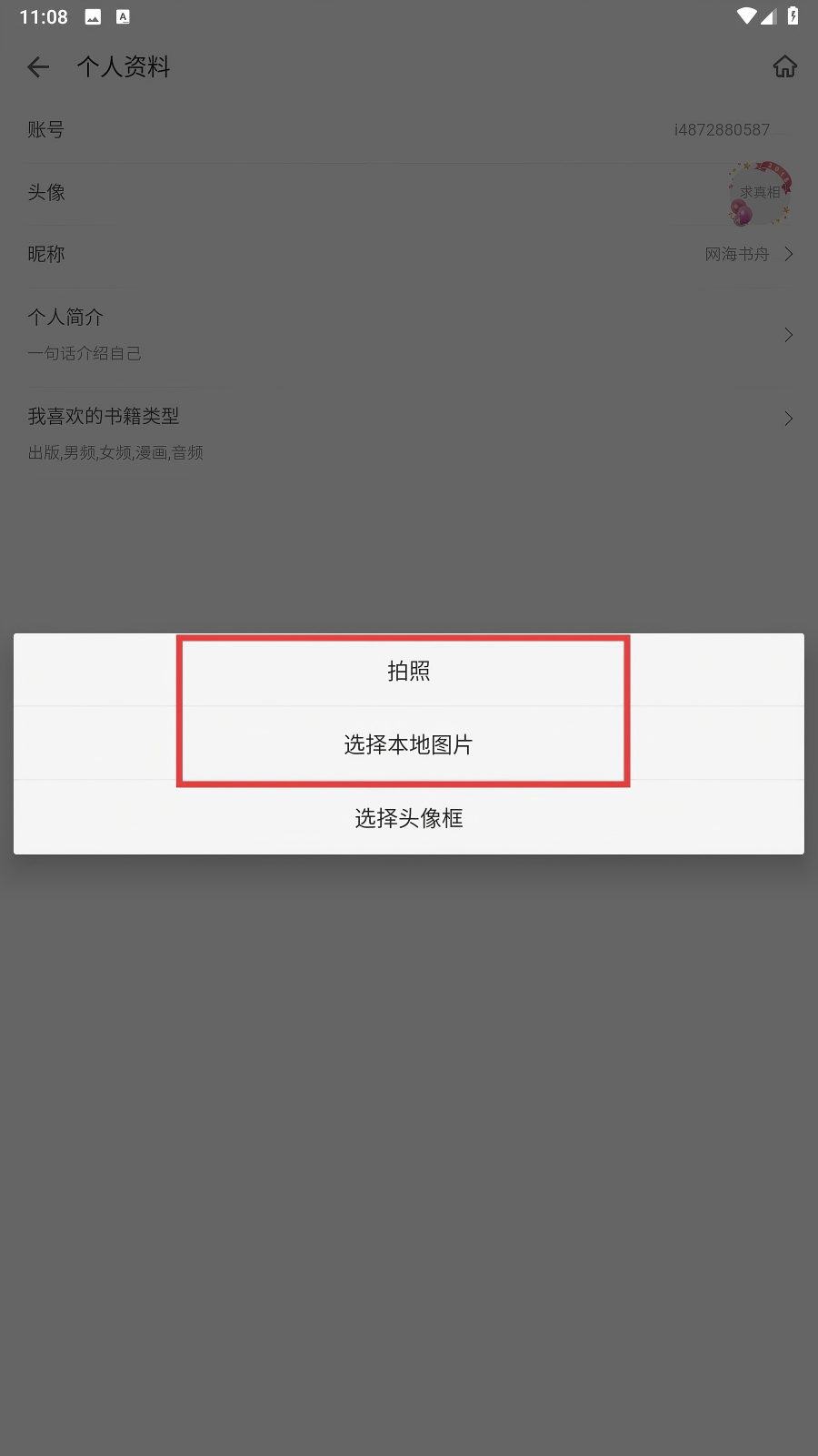 4、在菜单中选择【拍照】或【选择本地图片】,即可完成头像修改,让你的掌阅形象焕然一新呀。