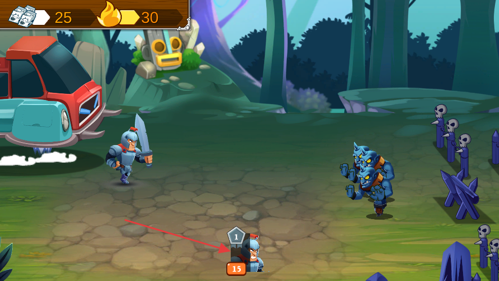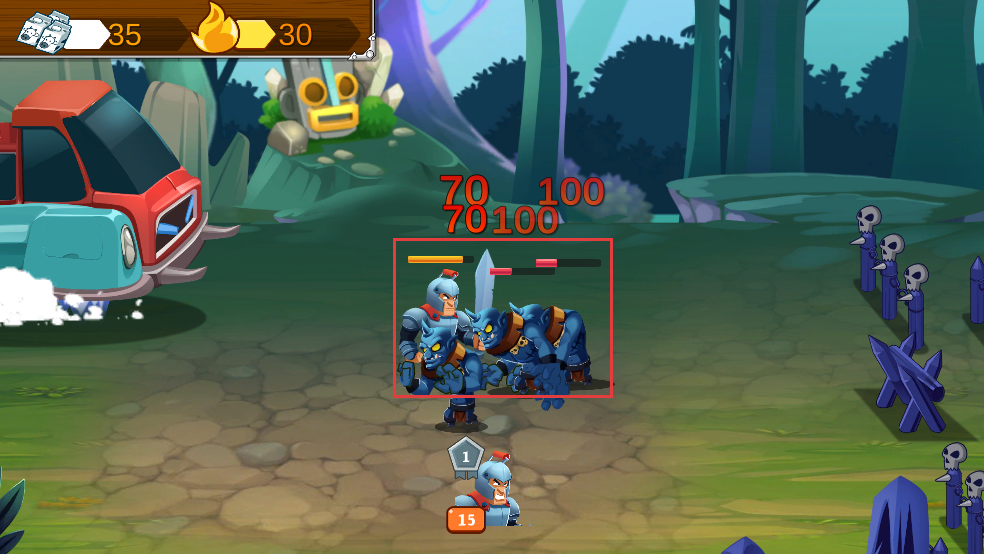 2、操控骑士与蓝色怪物近战交锋,注意观察双方血量,优先攻击血量较少的怪物。