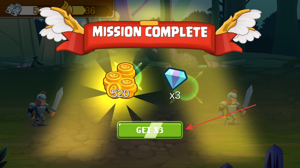 4、完成任务后点击【GET-X3】,获取3倍奖励,积累金币和钻石资源,助力后续关卡挑战。