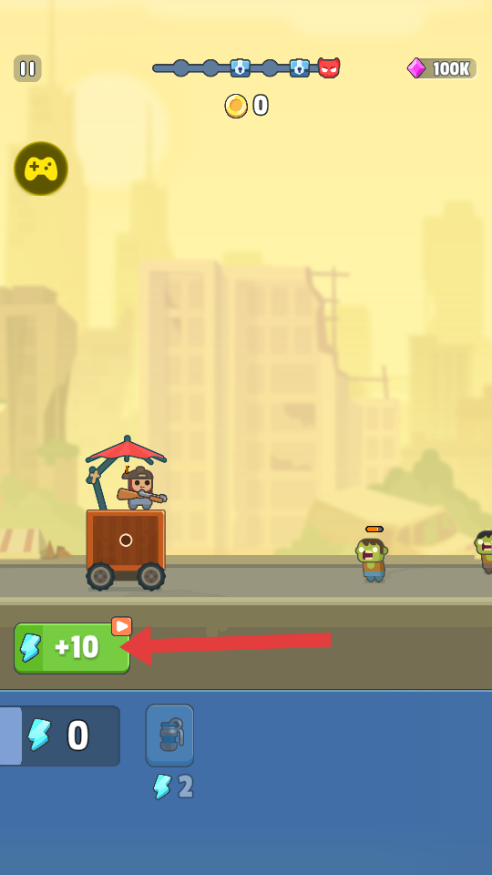 3、操控战车攻击丧尸,注意躲避丧尸的攻击,持续推进战斗,积累金币资源。