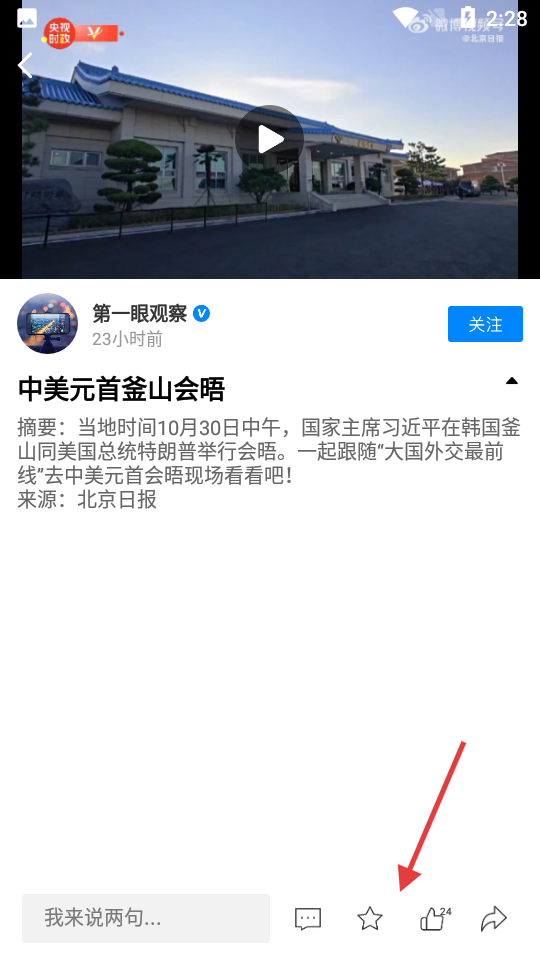 2、进入播放页面,点击下方收藏图标,完成收藏。