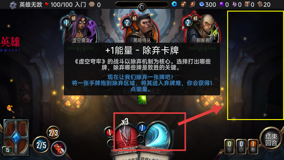 4、掌握除弃机制,将手牌拖到除弃区域获取能量,策略性选择打出和除弃的卡牌。