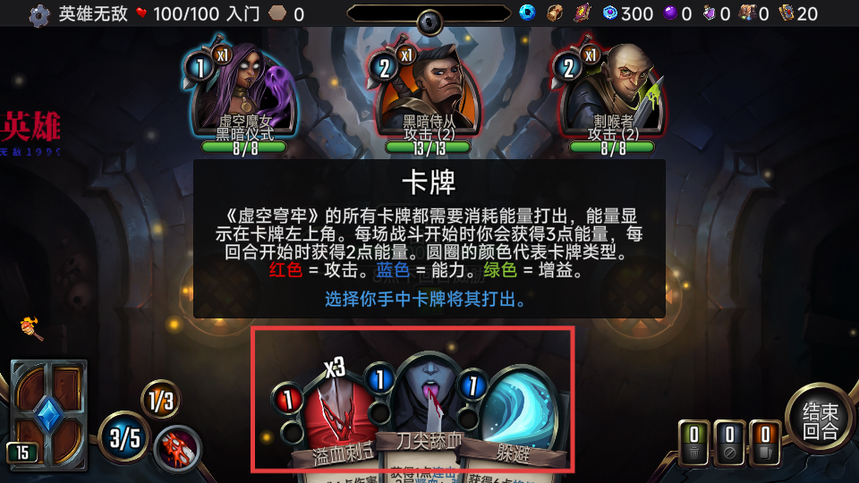 3、了解卡牌能量消耗机制,选择手中卡牌打出,合理利用能量和卡牌类型。