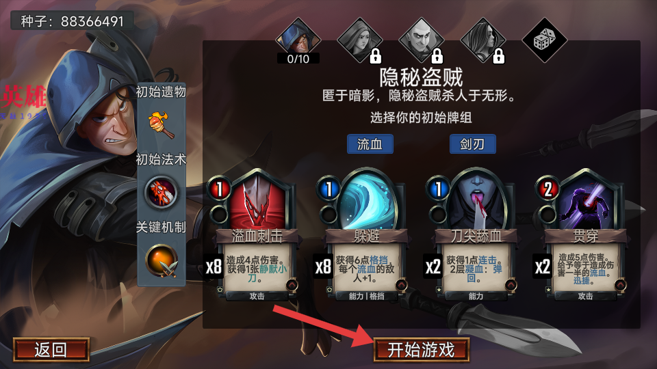 1、点击【新游戏】,开启游戏冒险,进入角色选择和牌组构建阶段。