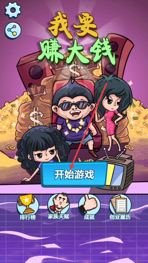 1、游戏初始界面,点击【开始游戏】按钮,进入【我要赚大钱】的游戏世界,开启创业赚钱之旅。
