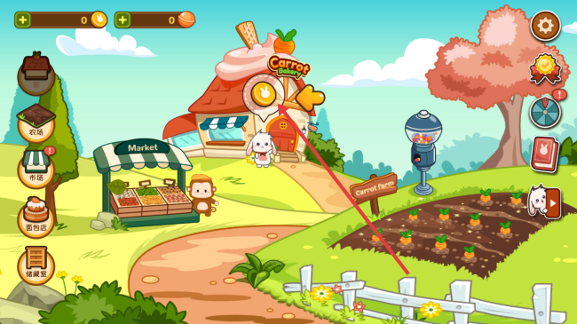 1、进入游戏后,可点击【CarrotShop】区域,开启与胡萝卜商店相关的操作,推进游戏进程。